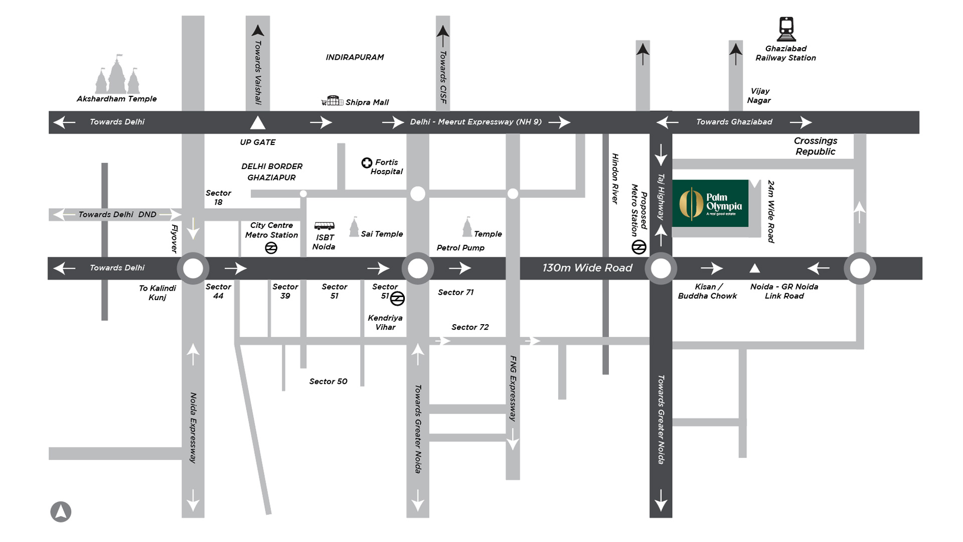 Disclaimer : The Promoter: SamIndia Abhimanyu Housing is developing the Project ‘Palm Olympia Ph-2’ duly registered with UPRERA registration no. UPRERAPRJ308567 (www.up-rera.in) .The images, appearances, colours, etc. given herein are mere artistic impression for representation purposes only and do not constitute an offer an invitation to offer and/or commitment of any nature between the promoter and the recipient. The data/information herein is intended to give a general understanding of the subject matter and is subject to change without any prior notice. Readers are therefore requested to verify all details, including area, amenities, services, terms of sale and payment schedule and other relevant terms independently with the promoter prior to arriving at any decision of buying any apartments / spaces in the said project. The binding offering shall be governed by the terms and conditions of the Agreement for Sale only. In no event will the Promoter be liable for any claim made by the reader including seeking any cancellation and/or withdrawal for any of the Inaccuracies in the Information provided in the advertisement, though all the efforts have been made to ensure accuracy. We also do not hold any responsibility for any Information provided by any broker/ channel partner/property dealer or made available on any website/email communication other than official website/email/correspondence. [ 1 acre= 0.405 Hectare, 1 sq.mt. = 10.764 sq. ft., 1 sq. mt=1.196 sq. yd.]